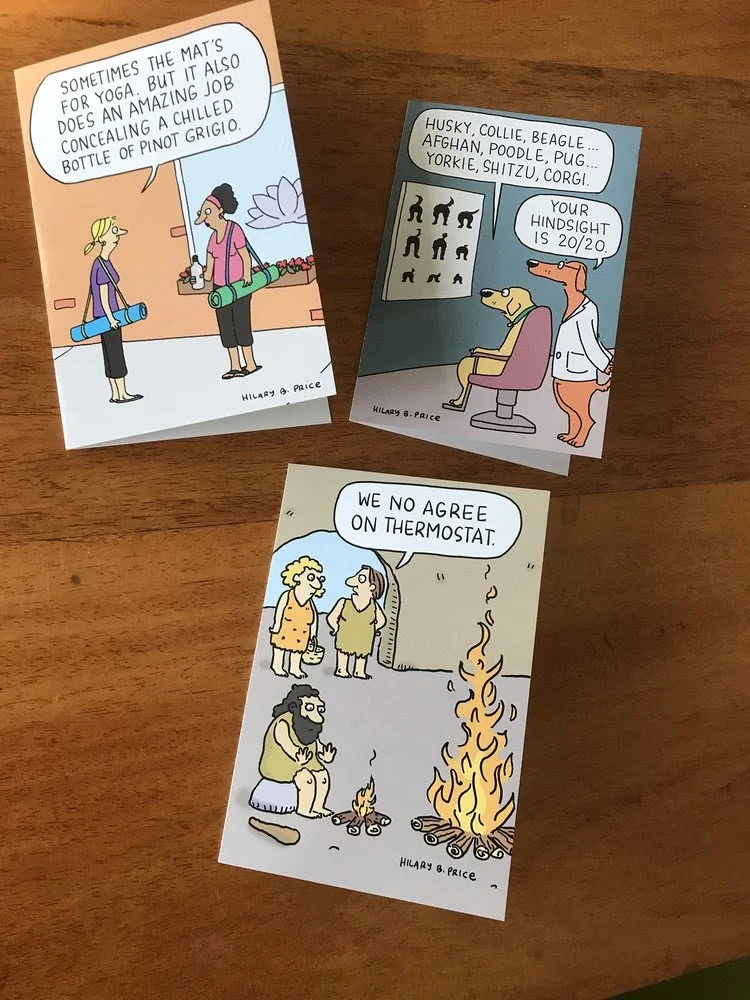 This is just a smattering. We work with Nobleworks (shipping is free!) and TreeFree Greetings(they’ll stamp and send it for you!)