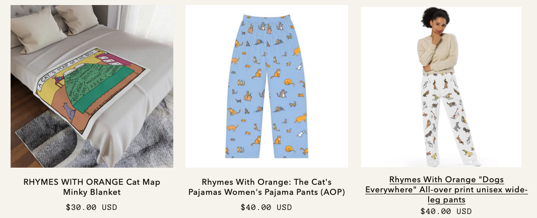 Welcome to the store, where you’ll find Prints, Pajamas, Comic Books, Greeting Cards, Mugs, T-shirts…All Under Different Roofs. Keeeeep scrolling!
